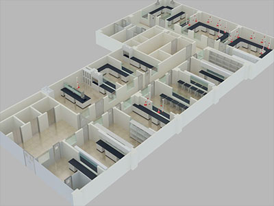1. 精密仪器室 精密仪器室要求具有防火、防震、防电磁干扰、防噪音、防潮、防腐蚀、防尘、防有害气体侵入的功能,室温尽可能保持恒定。为保持一般仪器良好的使用性能,温度应在15~30℃,有条件的最好控制在18~25℃。湿度在60%-70%,需要恒温的仪器室可装双层门窗及空调装臵。 仪器室可用水磨石地或防静电地板,不推荐使用地毯,因地毯易积聚灰尘,还会产生静电、大型精密仪器室的供电电压应稳定,一般允许电压波动范围为±10%。必要时要配备附属设备(如稳压电源等)。为保证供电不间断,可采用双电源供电。应设计有专用地线,接地极电阻小于4Ω。 气相色谱室及原子吸收分析室因要用到高压钢瓶,最好设在就近室为能建钢瓶室(方向朝北)的位臵。放仪器用的实验台与墙距离500mm,以便于操作与维修,室内有有良好的通风,原子吸收仪器上方设局部排气罩。